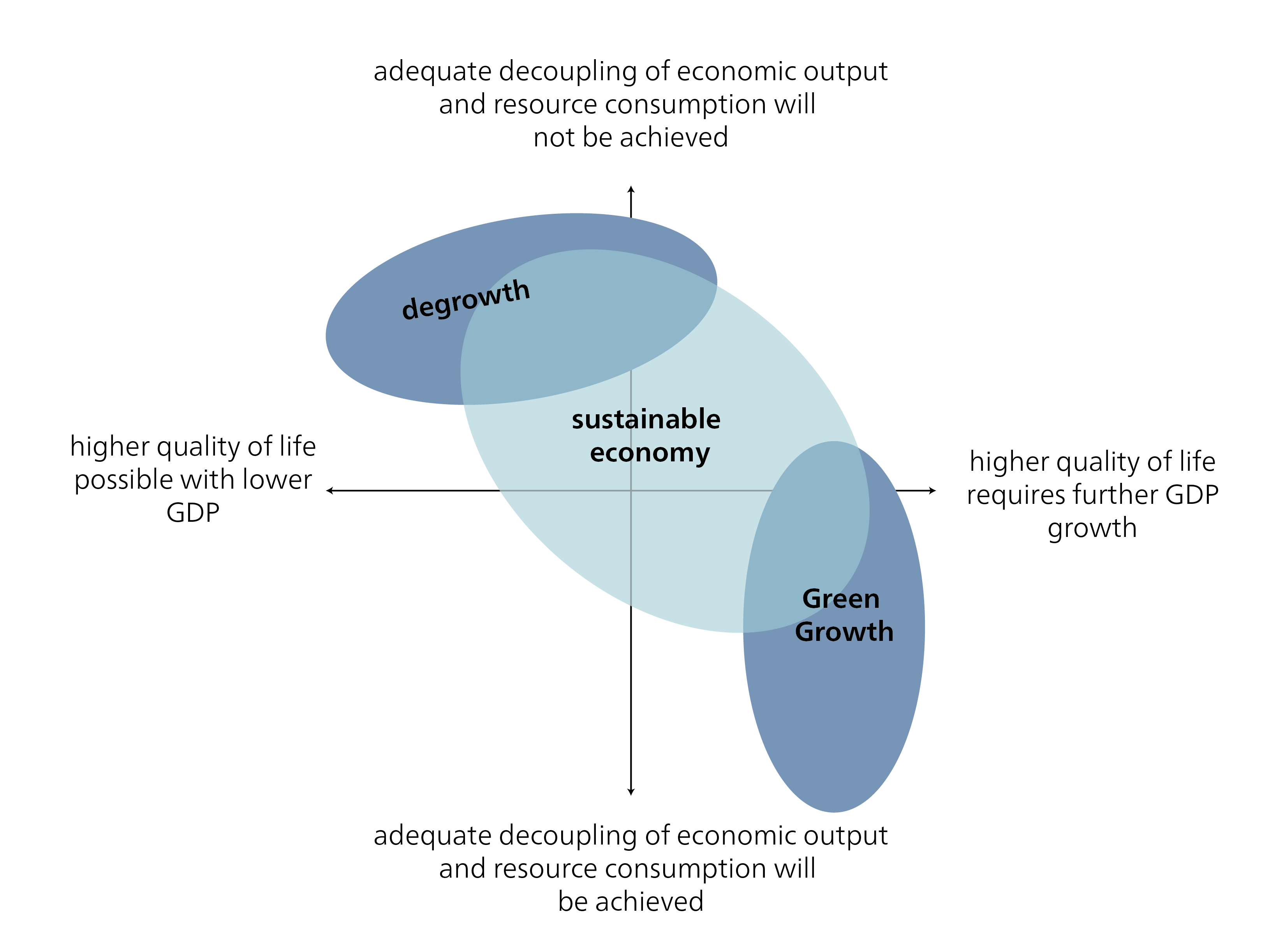 The two central scientific concepts that shape the debates on sustainable economics as polar positions and can be located in these approaches: green growth and post-growth[1] .
